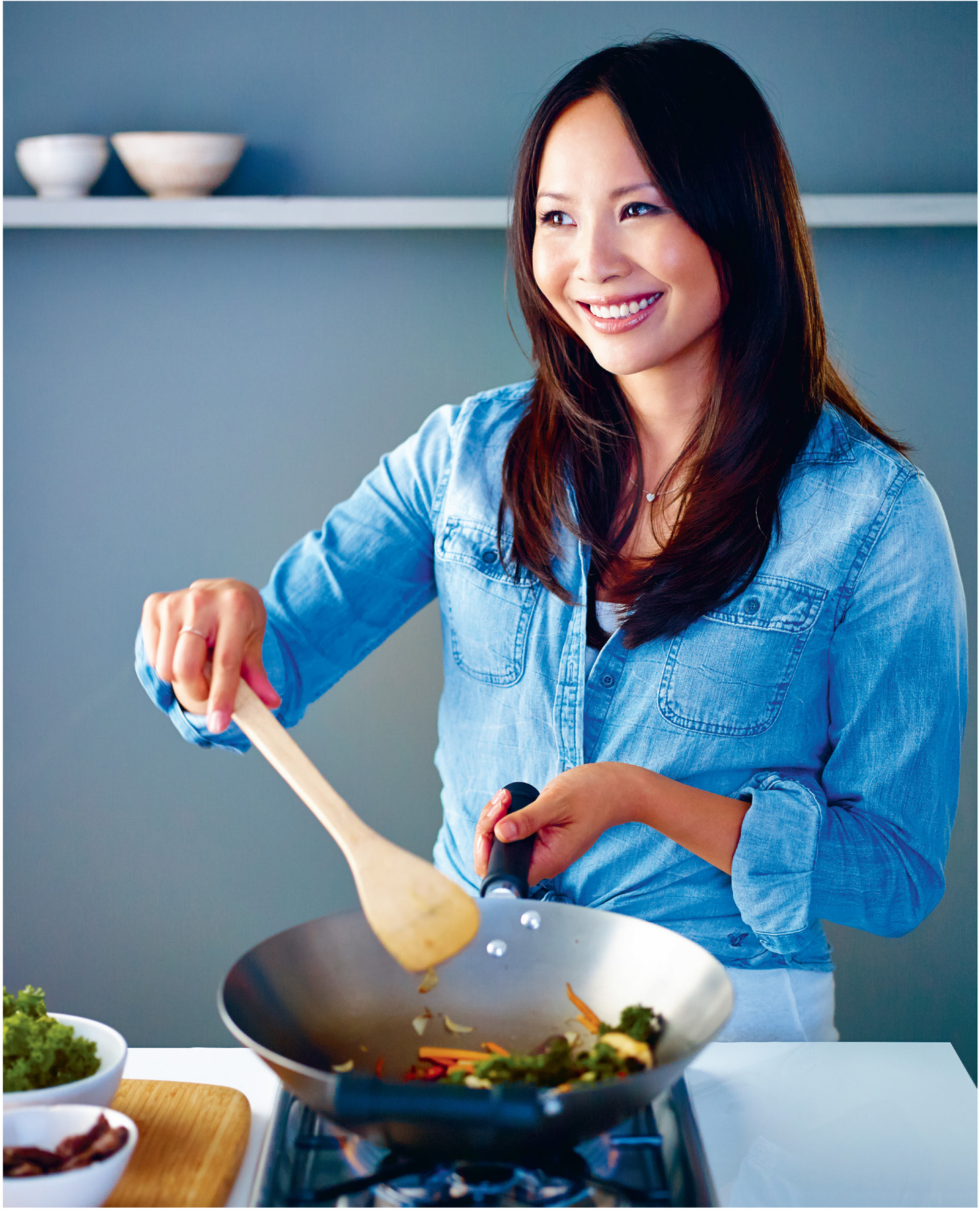 This book is designed to help you eat clean and fresh every day. The basic tools you need to get started are a carbon-steel wok, an all-purpose chef’s knife or a cleaver, which I prefer, and a chopping board. With spices and Asian storecupboard ingredients that you can build up, eating nutritiously and healthily is at your fingertips.