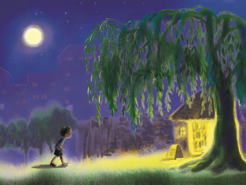 Мальчик заметил на пустыре маленькую хижину, которую прежде никогда не видел. Она вся обветшала, будто была построена давным-давно, и напоминала полуразрушенный островок, которому не место в городке. Мальчик протёр глаза и вновь уставился на хижину. От бревенчатого домика исходило сияние. Этот свет становился то ярче, то тусклее, и, словно живой, он зазывал к себе.