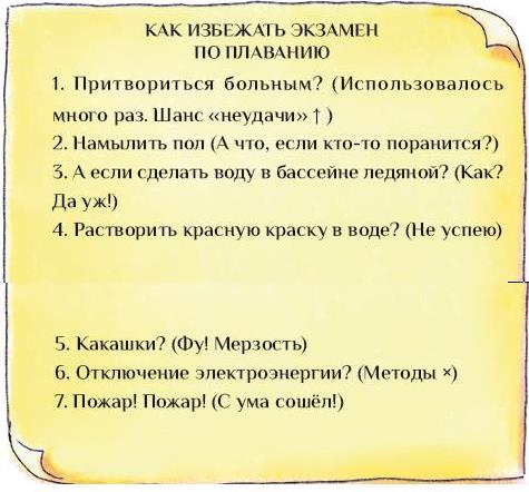 – Избежать предстоящего экзамена по плаванию. Я не хочу сдавать этот экзамен, я очень, очень, очень не хочу, – Ходже вздохнул.