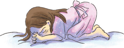Затем девочка встала на колени, зажмурила глаза и крепко сложила руки вместе.