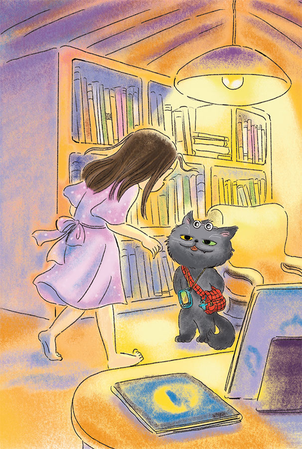 Ынджи заглянула внутрь. Там сидел кот в кресле-качалке и читал книгу, совсем как человек. Девочка протёрла глаза и ущипнула себя за щёку. Боль дала знать, что происходящее реально и это совсем не сон.