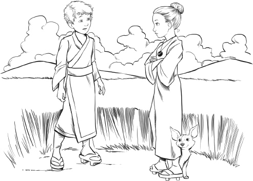 Tom looked down at himself. He was wearing a similar robe, though his was grey with a black belt. He nodded. “I’ve seen these clothes before, in books. They’re called kimonos. The Japanese wear them. So we must be in Japan.”