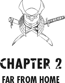 As the horsemen drew nearer, Tom recognised their armour from an exhibit in his dad’s museum. It belonged to medieval Japanese warriors called samurai. Each warrior wore an iron breastplate, and skirts of overlapping leather protected their legs. Their helmets were decorated with what looked like alien antennae. Strapped to the samurai’s backs were curved swords called katana. In the safety of the museum, Tom had thought the katana looked really cool. Up close they looked like deadly weapons.