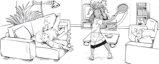 Zuma picked up Tom’s tennis racquet and looked at it curiously. A frown wrinkled her blue-painted face. “What’s this?” she asked. “Is it some sort of weapon?” Without waiting for a reply, the Aztec girl shrieked a battle cry and took a wild swing with the racquet.