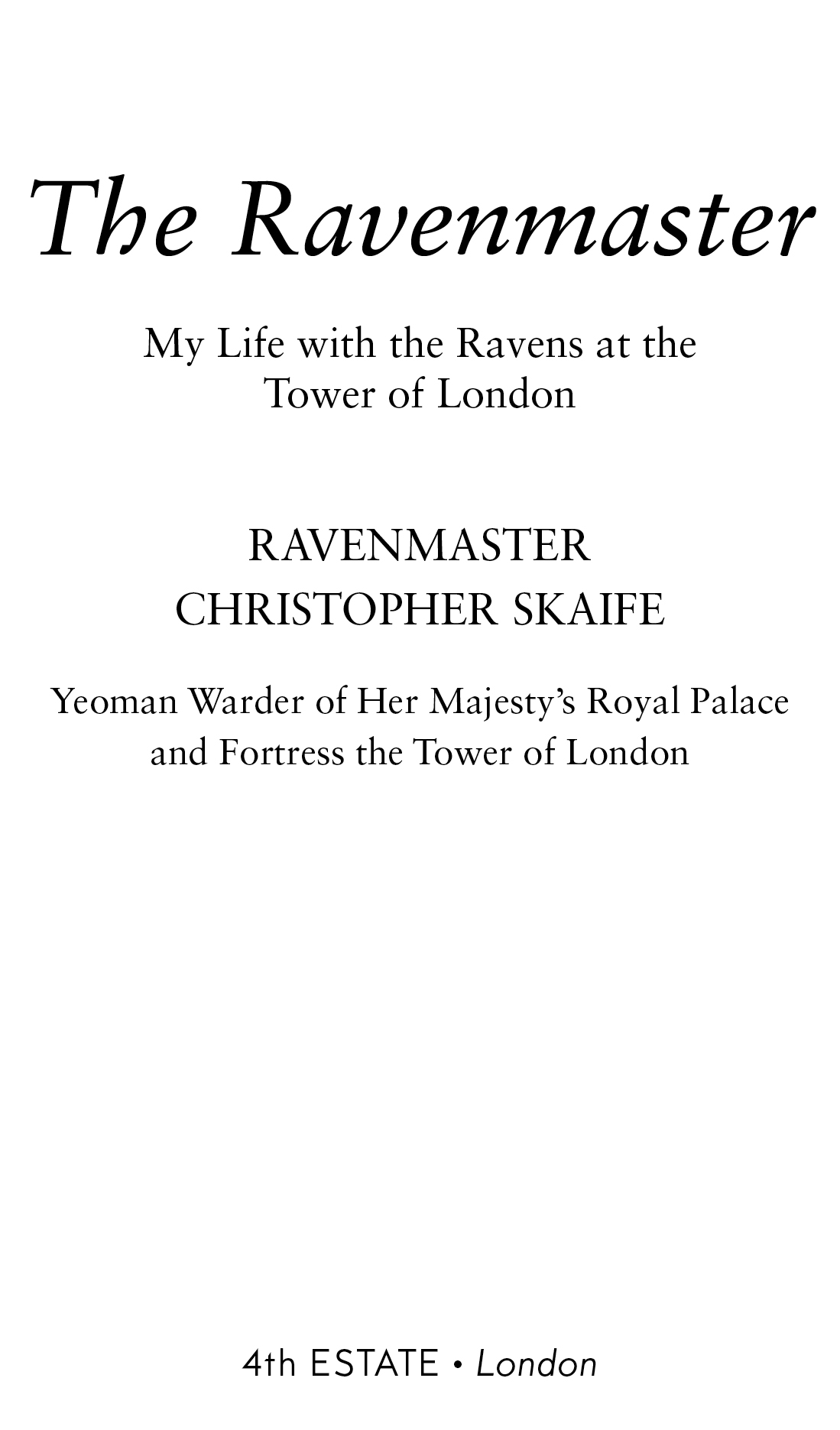 This book will attempt to answer some of the most common questions I get asked about the Tower ravens. Why are there ravens at the Tower in the first place? Where do our myths and superstitions about the birds come from? How do I care for them? What do I feed them? Who gets to name them? What happens to them when they die? How and why do they stay at the Tower?