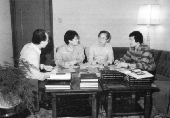 Чой Хон Хи, Чой Джун Хва (сын основателя тхэквондо),Ли Ён Гил и Пак Джун Тэ работают над энциклопедией тхэквондо.