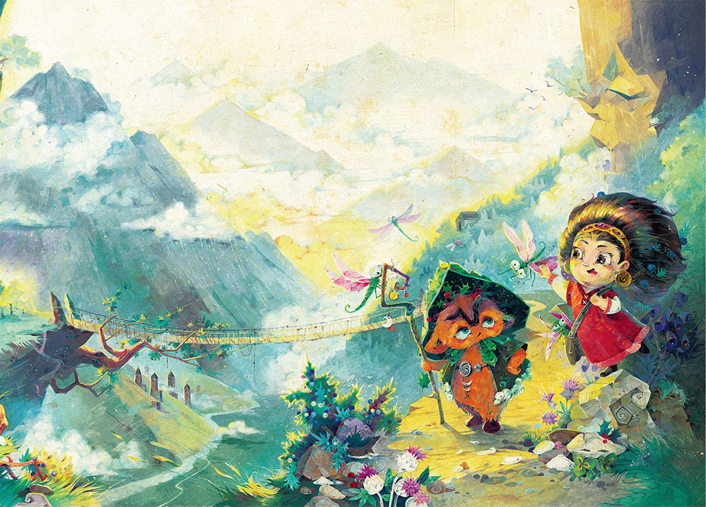 Они стояли на краю глубокого ущелья. Над пропастью, между двумя утёсами, висел старый скрипучий канатный мост. Поручнями ему служили верёвки, натянутые от края до края, а под ногами покачивались в такт ветру грубые деревянные доски, перевязанные между собой.