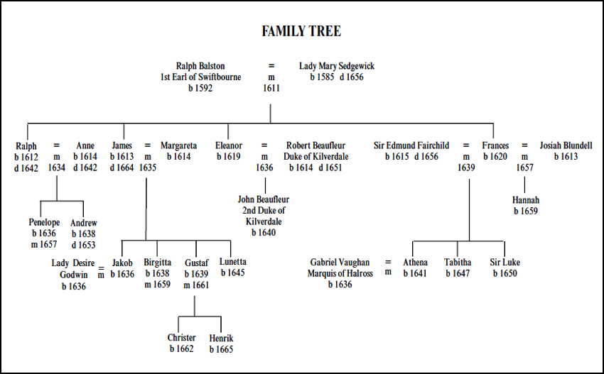 Athena Fairchild, Colonel Jakob Balston and the Duke of Kilverdale are cousins, but they’ve led very different lives. Athena grew up in England, Jakob in Sweden, and Kilverdale spent his childhood exiled in France as a result of the war between Charles I and Parliament.