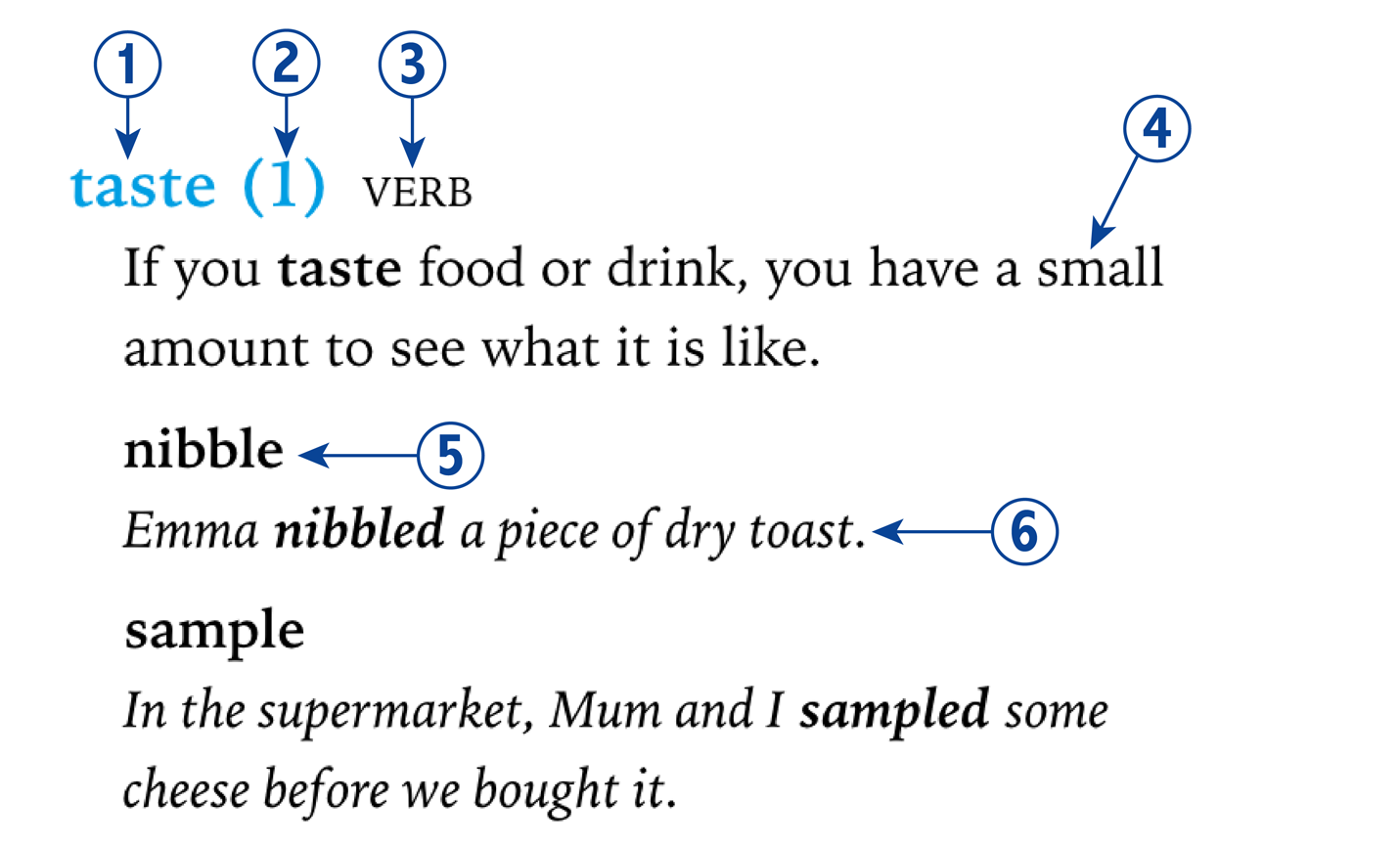 4. The definition tells you what the headword means so you can be sure you are looking at the correct entry.