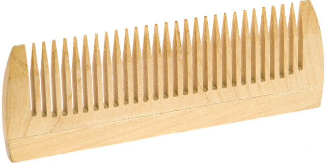 A comb is a flat piece of plastic or metal with narrow teeth on one edge. You use it to tidy your hair.