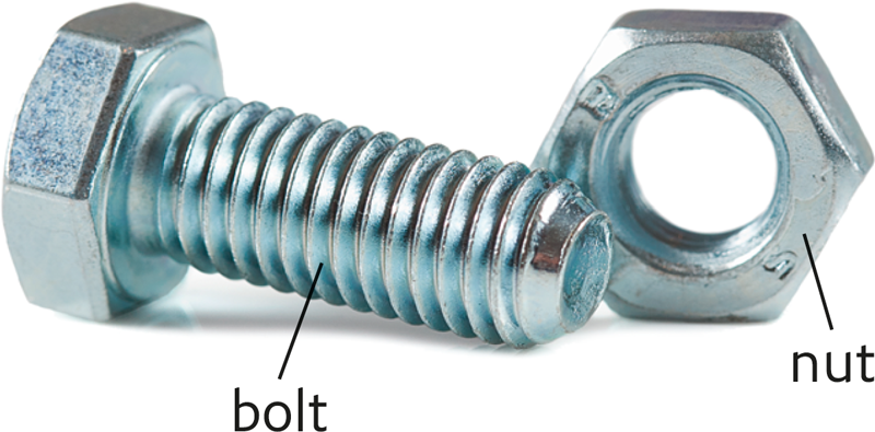 NOUN 1 a metal object that screws into a nut and is used to fasten things together