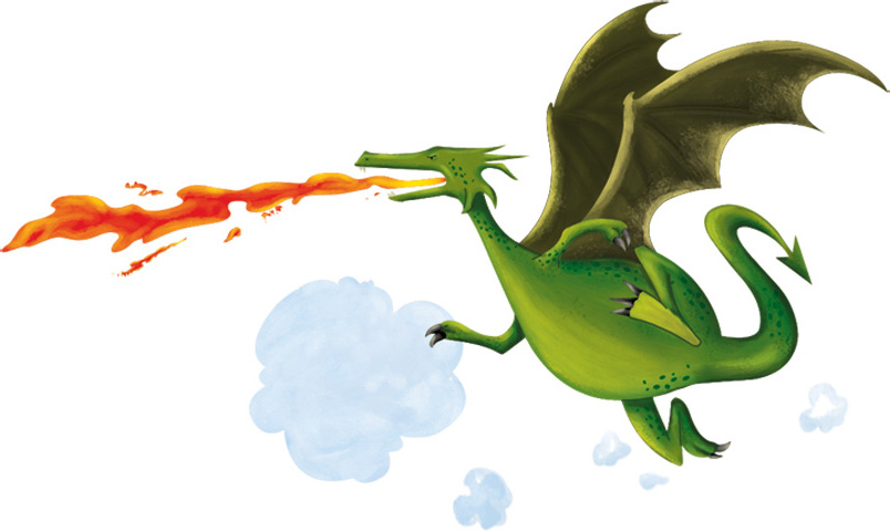 In stories, a dragon is a fierce animal like a big lizard. It has wings and claws and breathes fire.