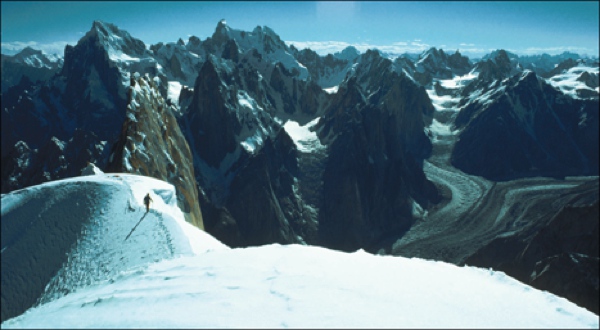The snow-covered peaks of the Karakoram Range, Pakistan.