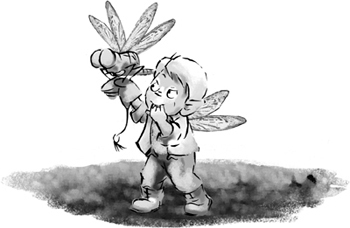 It had been Sparkler’s idea to train the insects, but somehow, he just didn’t seem to have the knack for it. Half the dragonflies on Darvell’s Pond had been retrained for hunting, racing or even formation flying, while his just sulked and turned its back on him. He regretted naming it now, obviously. Grunion’s one was known as ‘Blue Thunder’ and brought its master all sorts of delicious things for the oven. Wing had one she called ‘Lightning’ and even her father had managed to train one he called the ‘Yellow Peril’.