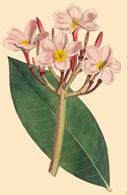 Plumeria is a genus of plants named by Tournefort in honour of his countryman the celebrated Plumier, it comes near to Nerium or Oleander, and contains several species, all natives of warm climates.