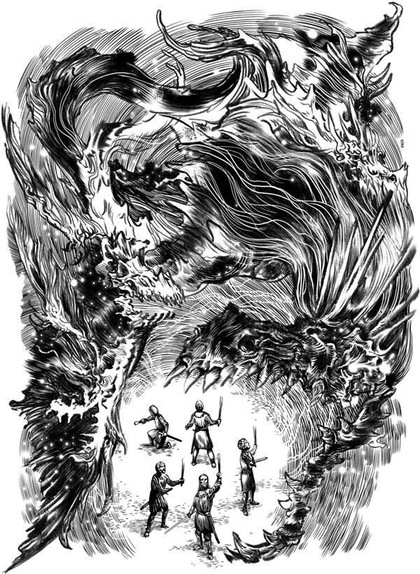 Воздух был насыщен сырым холодом, и каждый вдох отдавал разрывающей болью в груди. Пар изо рта обволакивал испуганные лица, но солры отгоняли страшные мысли, преданно следуя за господином. Во тьму. В бездну.
