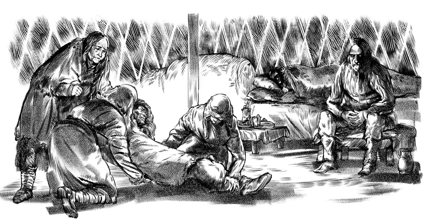 – С того снегопада… – ответила сдавленно женщина, не отрывая изможденного взора от своего мужа.
