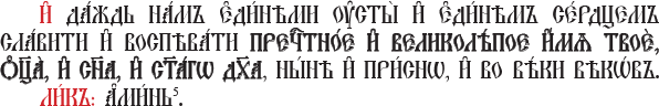 [И дай нам едиными устами и единым сердцем прославлять и воспевать Твоё самое почитаемое и великолепное имя: Отца и Сына и Святого Духа, теперь и всегда, и во веки веков. Аминь.][6]