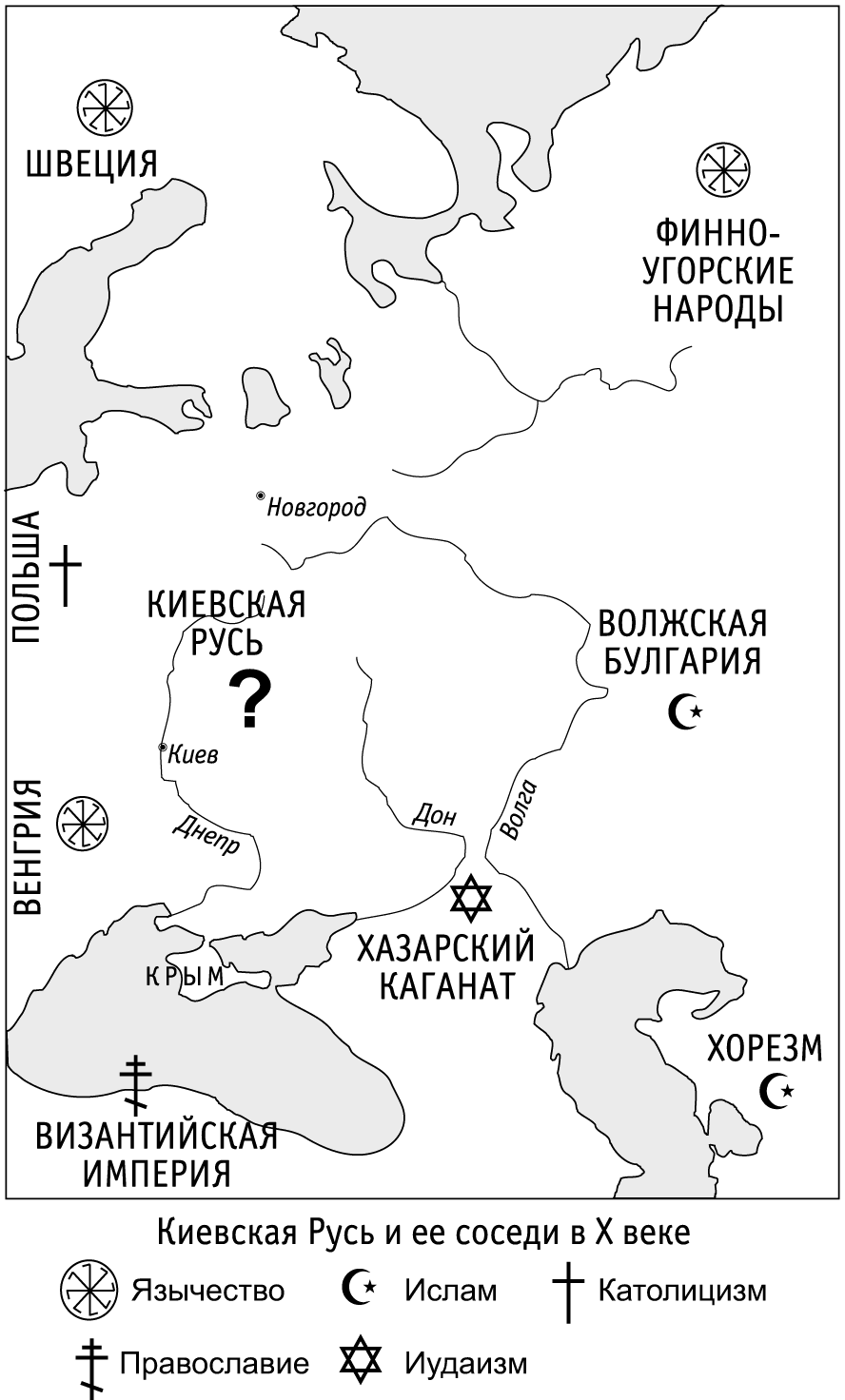 После гибели Святослава развернулась борьба между тремя его сыновьями, победителем из которой вышел младший – Владимир (980 г.). К этому моменту развитие государственности достигло такого уровня, что потребовалось объединить подданных единой религией. Этим была вызвана религиозная реформа Владимира: в Киеве и Новгороде были поставлены идолы языческих богов. Главным из них был Перун – бог-громовержец, считавшийся покровителем княжеской дружины. Однако язычество не могло обеспечить устойчивого положения на международной арене. Русь находилась на стыке сфер влияния разных мировых религий – ислама, иуда изма, христианства в форме католичества и православия. В 988 г. произошло крещение Руси: Владимир с дружиной крестился в крымском городе Херсонесе. После этого прошло массовое крещение киевлян. В 989 г. аналогичное крещение состоялось и в Новгороде. Идолы языческих богов были повержены.