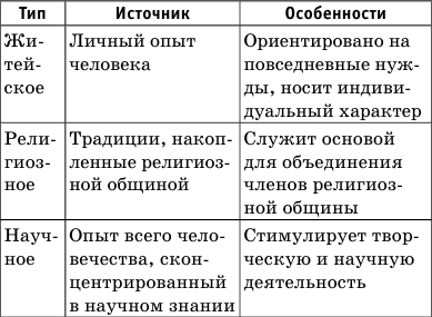 В последнее время выделяются виды знания, противостоящие научному. Строго говоря, они не являются видами знания, поскольку не основаны на опыте и не проверены (а зачастую и непроверяемы) на практике: