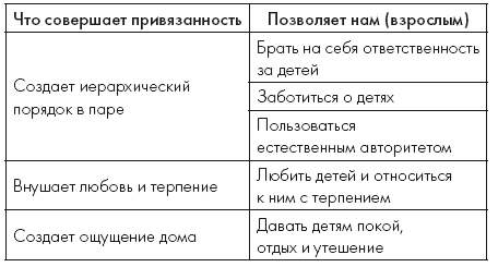 Если мы будем помнить о полярности в восприятии, мышлении и особенно в чувствах детей, то мы наверняка сможем спокойнее относиться к их порой резким и категоричным реакциям. Кроме того, мы сможем использовать силу полярности, чтобы самим оказаться на правильном полюсе привязанности и осознанно выстраивать мосты к другим значимым для ребенка людям. Так возникает своего рода «деревня» привязанности, в которую включены все люди, к которым привязан ребенок и которые находятся на положительном полюсе привязанности. Проявления негативного полюса привязанности – отталкивание, настороженность, дистанцированность, будут проявляться по отношению к людям, не входящим в деревню привязанности ребенка. Это естественный защитный механизм, за счет которого люди, заботящиеся о ребенке и несущие ответственность за него, являются одновременно и теми, на кого ребенок ориентируется.