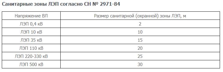Дар ҷадвали зерин Андозаи минтақаи муҳофизатӣ санитарӣ, м нишон дода шудааст.
