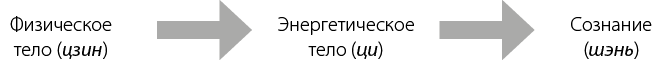 Каждая из трех ступеней нашей тренировки требует развития и улучшения способности тела производить три субстанции, называемые в даосизме цзин, ци и шэнь (). Они связаны с тремя ступенями развития, как показано на рисунке 1.2.