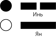 Обычно Инь изображается черным цветом или, как в Ицзине, прерывистой чертой. Ян – это белый цвет или сплошная черта (см. рисунок 1.7).