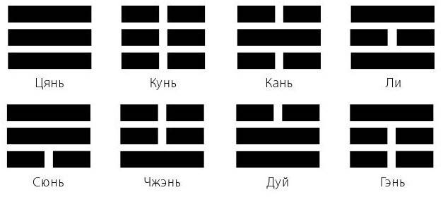 Различные частоты энергетических вибраций, существующих на энергетическом плане, представлены в даосизме восемью символами, которые называются триграммами, а по-китайски – гуа. Эти восемь символов объясняются в Ицзине, или «Книге Перемен». В этом священном трактате содержится математическая философия, объясняющая различные энергетические изменения во Вселенной.