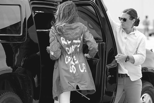 Во время визита в центр содержания детей нелегальных мигрантов в Техасе в 2018 г. первая леди США Мелания Трамп надела легкую парку цвета хаки от испанской фирмы Zara – известного ретейлера на рынке быстрой моды – с надписью в стиле граффити на спине: