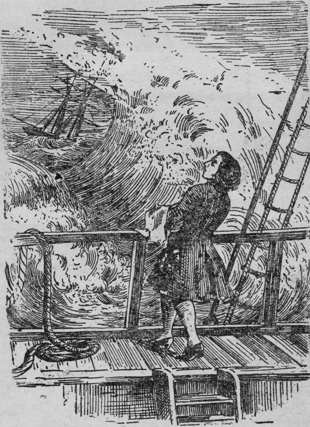 Çəmə səfə şəşminə ruji bə Yarmuti liman oməymon. Həvo çokbe. Əncəx çı fırtınə bəpeştə əbıə vo bə çəmə dimi tərəf qıneku de suruəti bə roy dəvom karde mane bedəbe. Çı Yarmuti limanədə lobərımon eğande tosə həvo okarde haft-həşt ruj çəş kardeyo məcbur bimon. Bı mıddətədə bə liman veyə qəmiyon oməyn. Əmo anə bə di dənıqıneyo ov ros beyədə (məddə rəmonədə) bə ru əzınimon dəşe. Əncəx vo hələ zusə be. Penc ruj dəvardə nıbe hənişən bərk karde; lobər iyən çı lobəri jiyonımon mehkəm beku matroson bo qıləy təhlukə sə nıdoeyo əmin bin. Əmo çəy maşkinə maştə rəbədəku voy həniyən bərkış karde iyən itkə dənıvarde ki, qıləy vohiməynə tufoni səş doy. Isət vohimə iyən həyəcon çı matroson dimədə hande əbiy. Mı, bə kapitani kəyut çan kərə dəşim-beşim, bə koəkon qıneyo şeyədə çımı toniku dəvardeyədə, de nimə sədo: «tələf bimon, tələf bimon!» voteş məsəme. Çı peyoən çəmə matrosonədə qıləy, navədə bəçəmə nezi əbıə çı qəmi eşe xəbəş doy. Dıqlə co qəmiyonən ıştə lobərışon sındıniyəbe bə dıyo şəbin. Əvoni çiy çəş kardəbe. Ləpə çəvon doronış arıştəbe.