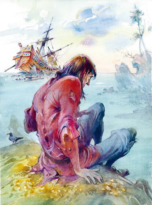 Волна коснулась ног человека лежащего на песке. Он пошевелился. Открыл глаза. И резко приподнялся. Вдали, за грядой рифов лежал на мели корабль с высоко задранной квадратной кормой.