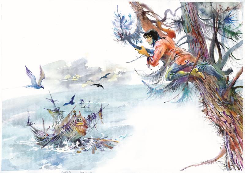 Вот она, кара за непослушание! Он уже прощался с жизнью, но, видно, судьба сулила ему не смерть, а долгие и трудные испытания. Несчастного выкинуло на необитаемый остров…