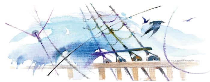 И Робинзон принялся за сооружение плота. Он спустил на воду обломки мачт, стеньги и реи, перекинул за борт несколько бревен полегче, предусмотрительно привязав каждое веревкой, чтобы не унесло течением. Теперь оставалось самому спуститься на воду и, подогнав бревна одно к другому, стянуть их веревками и укрепить положенными поперек реями и досками. Получился неказистый, но зато довольно надежный плот.