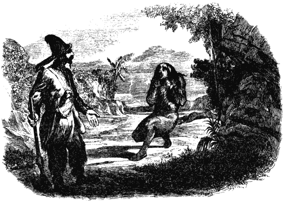 Но больше всего он был поражен тем, как я убил другого индейца на таком большом расстоянии. Он указывал на убитого и знаками просил позволения сходить взглянуть на него. Я позволил, и он сейчас же побежал туда. Он остановился над трупом в полном недоумении: поглядел на него, повернул его на один бок, потом на другой, осмотрел рану. Пуля попала прямо в грудь, и крови было немного, но, по всей вероятности, произошло внутреннее кровоизлияние, потому что смерть наступила мгновенно. Сняв с мертвеца его лук и колчан со стрелами, мой дикарь воротился ко мне. Тогда я повернулся и пошел, приглашая его следовать за мной и стараясь объяснить ему знаками, что оставаться опасно, так как за ним может быть новая погоня.