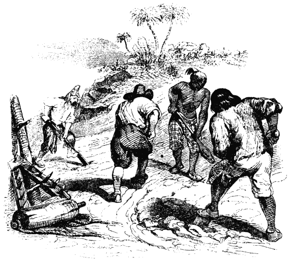 Я не мог надивиться благоразумной предусмотрительности моего гостя, как не мог не порадоваться тому, что он так предан мне. Его совет был так хорош, что, повторяю, я принял его не колеблясь. Не откладывая дела в долгий ящик, мы вчетвером принялись вскапывать новое поле. Работа шла успешно (насколько успешно может идти такая работа при деревянных орудиях), и через месяц, когда наступило время посева, у нас был большой участок возделанной земли, на котором мы посеяли двадцать два бушеля ячменя и шестнадцать мер риса, то есть все, что я мог уделить на посев. Для еды мы оставили себе в обрез на шесть месяцев, считая с того дня, когда мы приступили к распашке, а не со дня посева, ибо в этих местах от посева до жатвы проходит около шести месяцев.