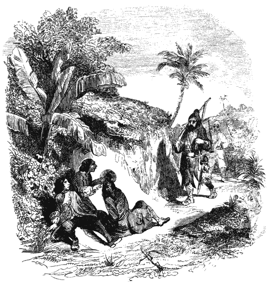 Как мне хотелось, чтобы в эту минуту со мной были испанец и старик индеец, уехавший с ним, или чтобы я мог подкрасться к ним незамеченным, выстрелить по ним в упор и освободить пленников, ведь я заметил, что ни у кого из разбойников не было с собой ружей. Но скоро мысли мои приняли иное направление.