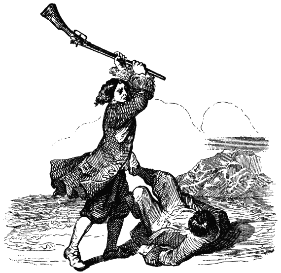 Тем временем я начал готовиться к бою, но с большой осмотрительностью, так как знал, что теперь мне предстоит иметь дело с более опасным врагом, чем дикари. Пятнице, который сделался у меня превосходным стрелком, я тоже приказал вооружиться. В своей мохнатой куртке из козьих шкур и такой же шапке, с обнаженной саблей у бедра и с двумя ружьями за спиной, я имел поистине грозный вид.