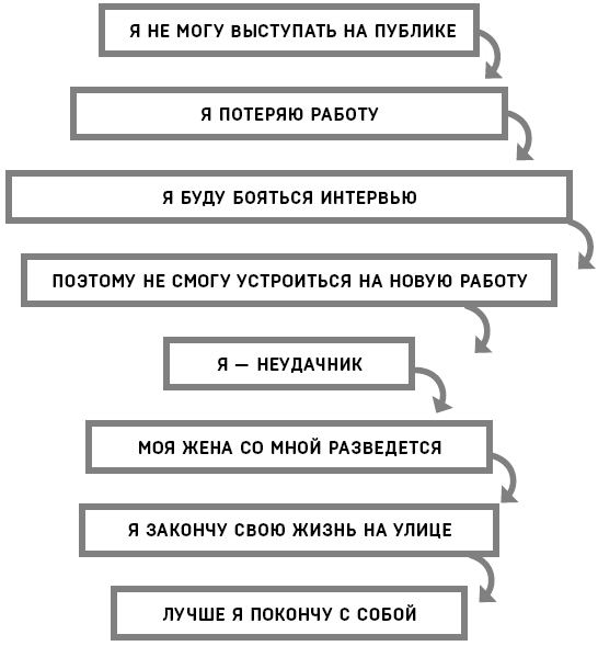 Нынешний «эпизод», из-за которого Джимми попал в приемное отделение «Скорой помощи», начался две недели назад, когда он узнал, что должен провести презентацию для одного из крупнейших клиентов своей компании. Это наполнило его ужасом. Он сказал мне: «Если бы меня попросили описать, на что похож этот страх, я бы сказал, что это похоже на ситуацию, когда ты находишься в камере смертников и твое время вышло. Охранник открывает дверь, и ты должен сделать первый шаг… Вот такой страх пробирает меня до костей». Джимми боролся с глоссофобией (страхом публичных выступлений) еще со средней школы. Благодаря упражнению под названием «Разорвать узы прошлого», о котором я расскажу позже, мы узнали, что этот страх начался, когда ему было 12 лет, в тот день, когда его бабушка заставила его выступить свидетелем в Верховном суде округа Лос-Анджелес, дав показания о том, почему его отец, один из лидеров уличной банды, не должен быть приговорен к смертной казни за двойное убийство. Тревожные драконы Джимми дохнули огнем на центры страха в его молодом мозгу, вызвав движение множества НАМов, в том числе: «Что, если я не смогу как следует выступить в суде и в конечном итоге стану причиной смерти своего отца?»