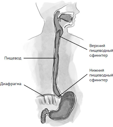 ПИЩЕВОД представляет собой мышечную трубку, длина которой составляет 25–30 см. В начале пищевода находится верхний пищеводный сфинктер, а оканчивается пищевод нижним пищеводным сфинктером[2]. Пищевод совершает волнообразные перистальтические движения, облегчая процесс продвижения пищевого комка.