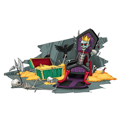 Дворец Кощея был похож на тёмную зловещую пещеру, полную сокровищ и ужасных существ. Под потолком вились огромные летучие мыши и чёрные вороны, в верхних углах плели паутину гигантские ядовитые пауки, внизу скалили зубы скелеты. Тут и там стояли сундуки с драгоценными камнями и золотом, охраняемые змеями и скорпионами. Но вместо того, чтоб над златом чахнуть, Кощей пытался открыть флешку. Он крутил её так и сяк, но никак не мог добраться до спрятанной в ней информации.