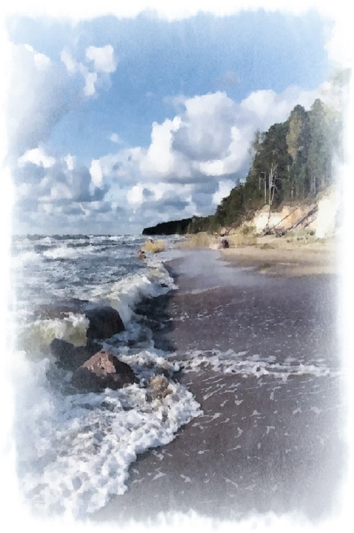 他沿着被冲刷的海岸爬行,