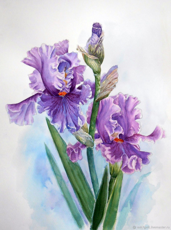 Прекрасные синие ирисыРастут в бескрайней степи.Голубыми огнями весныСияют они в зелёной степи.Как вы прекрасны, голубые огни!Яркие, хрупкие, крупные цветки,Вы словно сияете, как искры,Среди других ярчайших искр степи.А крупные белые ирисыВ той же бескрайней степи.Ярким светом звездыСияют в далёкой степи.Как вы прекрасны, белые цветки!Яркие, хрупкие, крупные цветки,Вы словно сияете, как звёздыПоля, среди ярчайших звёзд степи.