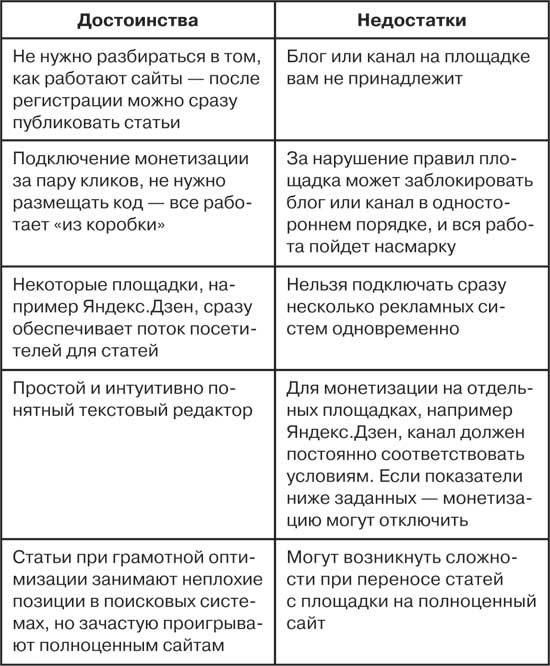 Проще говоря, главный плюс таких площадок – это простота и то, что к ним можно за пару кликов подключить системы монетизации Google AdSense и Яндекс. Дзен соответственно. Главный минус – прав у автора мало, его могут в любой момент заблокировать, и все придется начинать сначала.