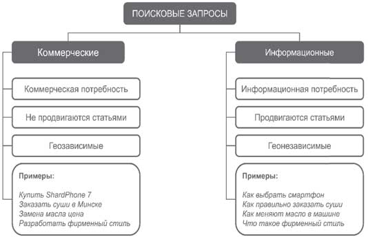 Условно все запросы можно разделить на две большие группы: коммерческие и информационные.