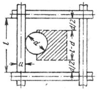 Зерна проходят через отверстия беспрепятственно, если они не касаются проволоки, т. е. когда центр зерна при падении проектируется на заштрихованную площадь (l – d)2 (рис. 1.3).