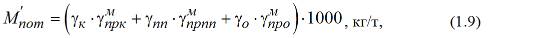 Потери магнетита с хвостами регенерации в расчете на 1 т исходного питания при непрерывной работе тяжелосредной установки в период опробования (без снятия нагрузки по питанию) М' ном определяют по формуле: