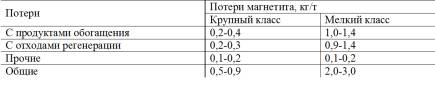 Общий расход магнетита складывается из безвозвратных потерь в ряде точек технологического цикла: