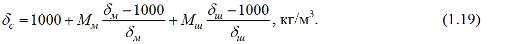 Плотность рабочей магнетитовой суспензии δс, образовавшейся из смеси магнетита и шлама