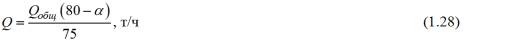 где Q и Qобщ – нагрузка соответственно на гидроциклоны и грохоты; α– содержание в исходном продукте дешламации зерен, меньших, чем нижний предел крупности машинного класса.